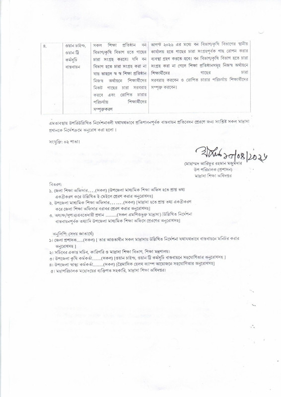 চিঠিতে বলা হয়, সরকারের নির্বাচনি ইশতেহার বাস্তবায়নের জন্য কারিগরি ও মাদরাসা শিক্ষা বিভাগের প্রণয়ন করা ১৮০ দিনের কর্মপরিকল্পনার কার্যক্রমগুলো বাস্তবায়ন করে বাস্তবায়ন প্রতিবেদন মাদরাসা শিক্ষা অধিদপ্তরের মহাপরিচালক বরাবর (planning.madrasah@gmail.com) ই-মেইল ঠিকানায় পাঠানোর প্রয়োজন।