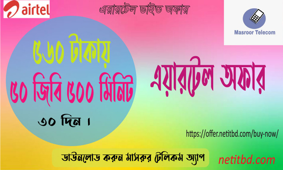 এয়ারটেল ৫০ জিবি ৫০০ মিনিট ৩০ দিন