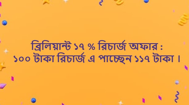 ব্রিলিয়ান্ট ১৭ % রিচার্জ অফার :
