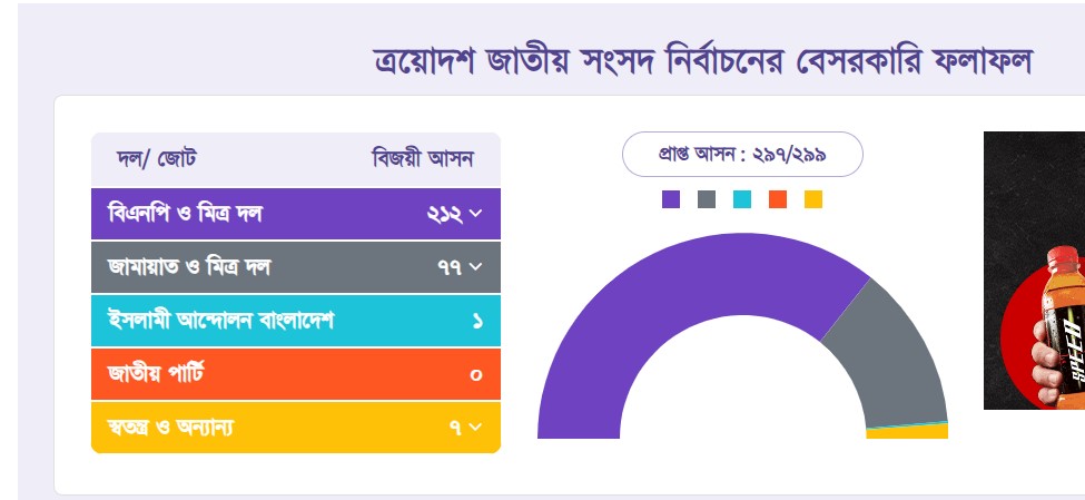 ত্রয়োদশ জাতীয় সংসদ নির্বাচনের ফলাফল