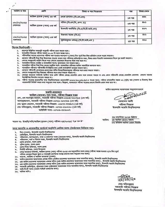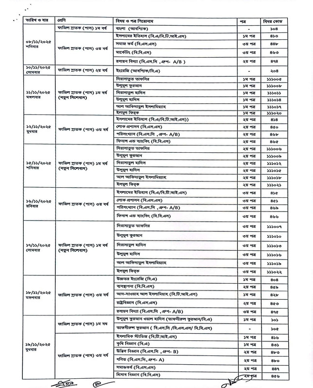 ফাজিল স্নাতক (পাস) ১ম, ২য় ও ৩য় বর্ষ (নিয়মিত, অনিয়মিত, প্রাইভেট, রিটেইক ও মান-উন্নয়ন) পরীক্ষা-২০২৪ এর সময়সূচি (পরিবর্তিত)
