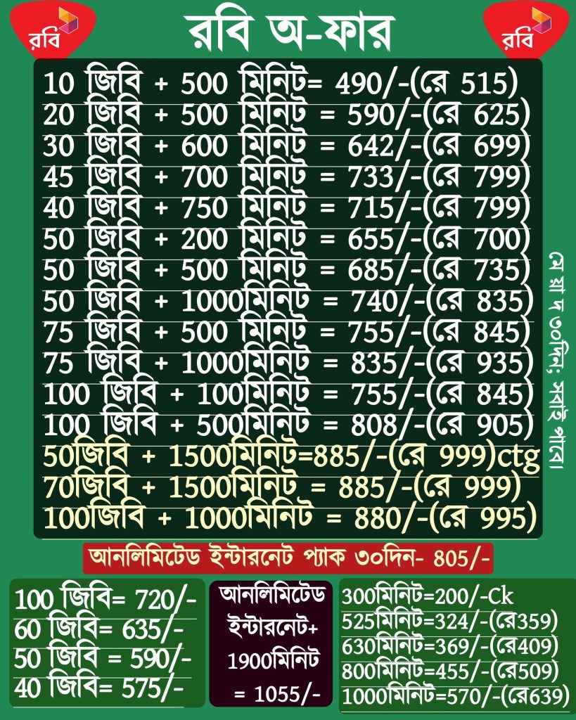 50 জিবি + 500 মিনিট = 685/-(রে 735)