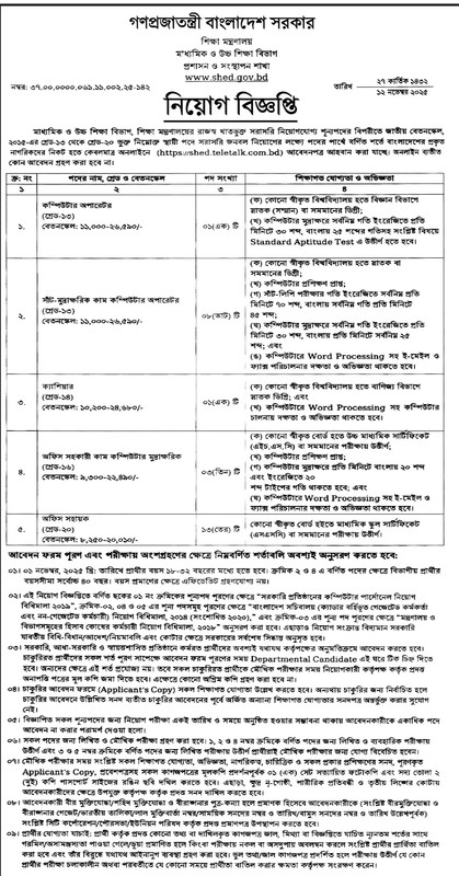 মাধ্যমিক ও উচ্চ শিক্ষা বিভাগ নিয়োগ বিজ্ঞপ্তি ২০২৫